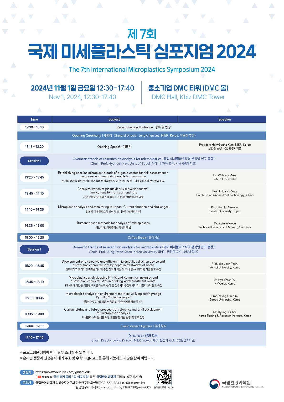 제7회 국제 미세플라스틱 심포지엄 개최 안내(24년 11월 01일, 12:30-17:40)